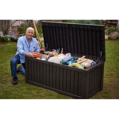 Sam's club 'free' membership is one of the best deals around. Sam's club has storage sheds in wood as well as vinyl and plastic/resin. Store your patio furniture, garden tools, lawn mower, and more with outdoor storage sheds and boxes in a variety of styles. Many storage boxes and most storage sheds can be locked, so your items will storage boxes come in a variety of sizes and materials. Deck storage and hose storage are important not only for aesthetic reasons, but for safety reasons as well.